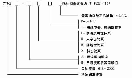 | 七、裝置標記示例 a)裝置,公稱流量6.3L/min,用溫度調節器調溫,供油泵用擺線齒輪泵,用繼電器、接觸器控制,不帶壓力罐裝置的標記為: XYHZ6.3-BBT稀油潤滑裝置JB/T8522-1997 b)裝置,公稱流量315L/min,用溫度調節器調溫,供油泵用人字齒輪油泵,用繼電器、接觸器控制,不帶壓力罐裝置的標記為: XYHZ315-BRT稀油潤滑裝置JB/T8522-1997 c)裝置,公稱流量500L/min,用溫度調節器調溫,供油泵用斜齒輪油泵,用繼電器、接觸器控制,不帶壓力罐裝置的標記為: XYHZ500-BXT稀油潤滑裝置JB/T8522-1997 d)裝置,公稱流量1000L/min,用調溫閥調溫,供油泵用螺桿泵,用PLC控制,帶有壓力罐裝置的標記為: XYHZ1000-ALPP稀油潤滑裝置JB/T8522-1997 | ||||||||||||||||||||||||||||||||||||||||||||||||||||||||||||||||||||||||||||||||||||||||||||||||||||||||||||||||||||